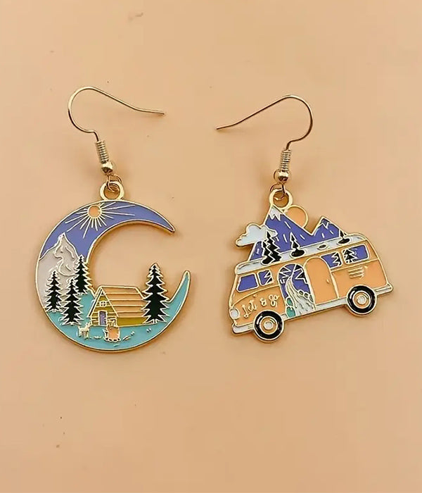 Show off your love for adventure with these fun Camping Moon and RV Earrings! Featuring a cute crescent moon and RV design in shiny GDMT, they’re perfect for hiking, road trips, or just exploring the city. Lightweight and easy to wear, these earrings add a playful touch to any outfit. Great for campers, dreamers, and anyone who loves the great outdoors!