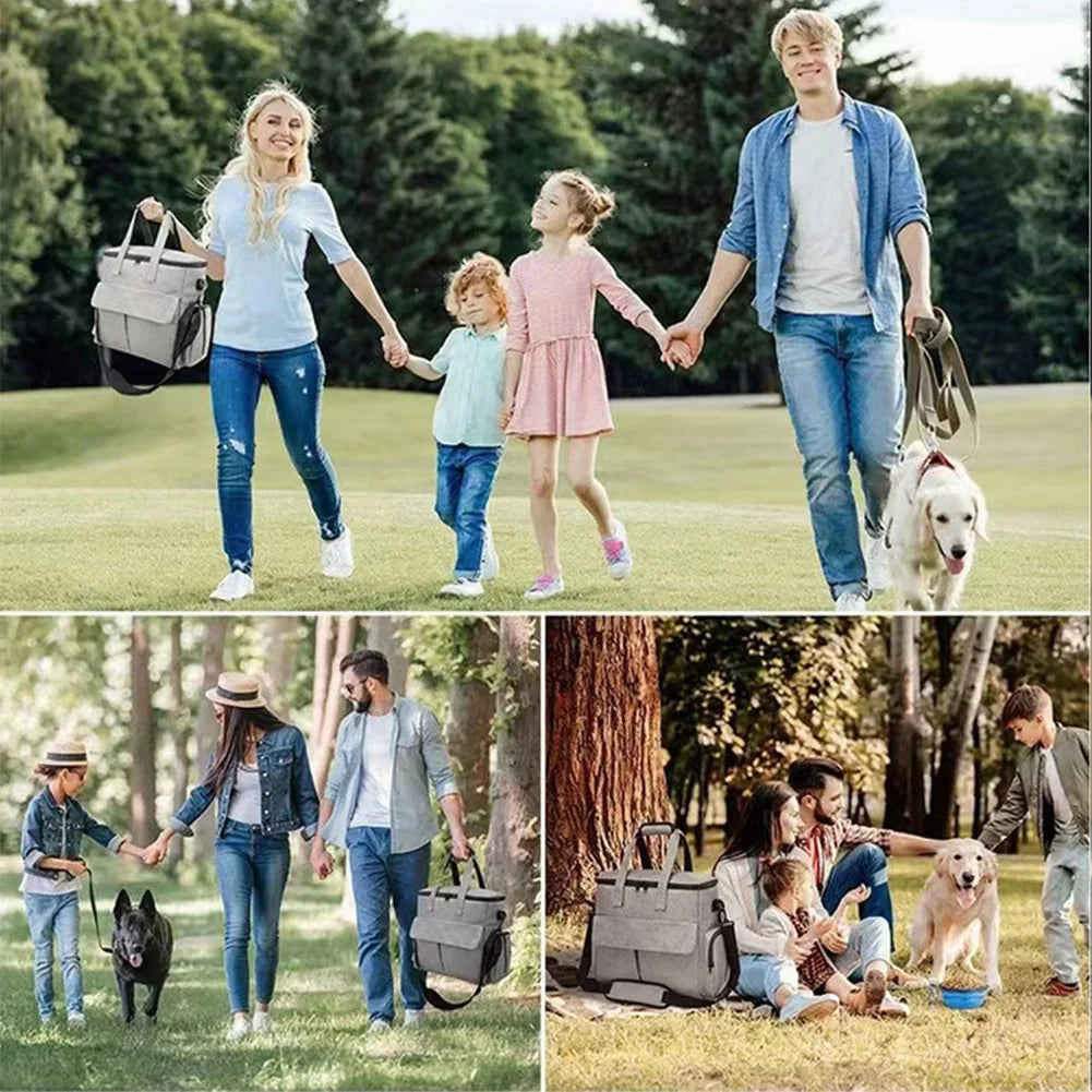 This premium pet travel backpack is a versatile, durable set designed for organized and convenient pet travel. Made from waterproof Oxford cloth with a PVC backing and leak-proof lining, it protects your gear in all conditions. The 6-piece set includes a stylish tote bag, two food bags, a waterproof placemat, and two collapsible silicone bowls for easy feeding on the go. Multiple pockets and an adjustable flip cover keep essentials secure, while adjustable straps allow handheld, shoulder, or crossbody carry. Compact and airline-compliant, it fits neatly under seats for hassle-free travel with your pet.